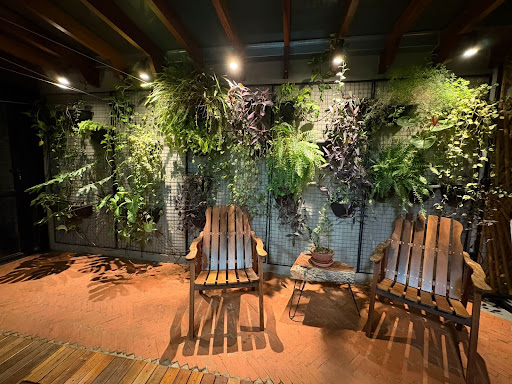 -Pergolado com jardim vertical e iluminação diferenciada